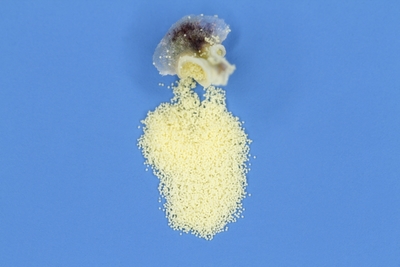 ソテツ雄花、葯から出た花粉