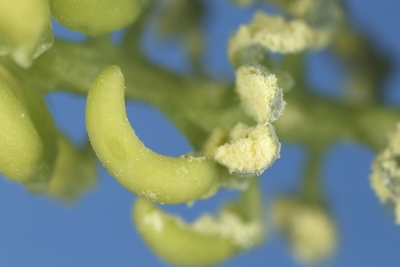 イチョウ雄花 葯が開き花粉が出る