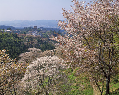 花の吉野山上千本より蔵王堂 シロヤマザクラ
