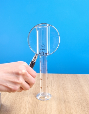 凸レンズでメスシリンダーを見る