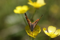 ウマノアシガタの蜜を吸うベニシジミ