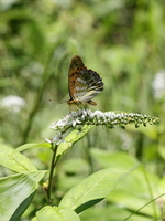 オカトラノオの蜜を吸うミドリヒョウモン
