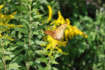 セイタカアワダチソウに止まるツマグロヒョウモン(雌)