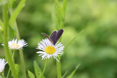 ヒメジョオンに止まるヒメシジミの雌