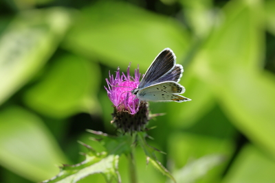 ノアザミの蜜を吸うヒメシジミ雄