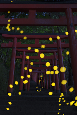 鳥居とヒメホタルの軌跡