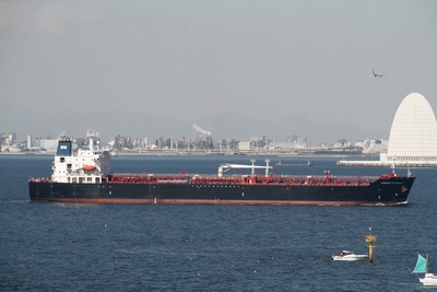 LNG燃料で東京湾を航行する貨物船