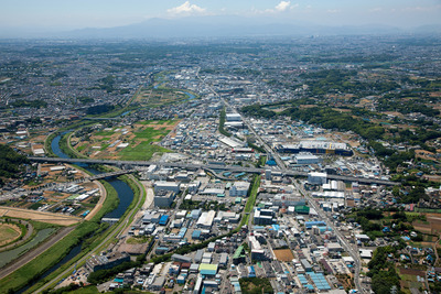 第三京浜道路,港北ICより池辺町周辺の工場群