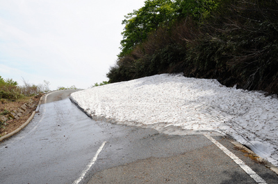 山岳地の県道に残る雪