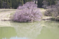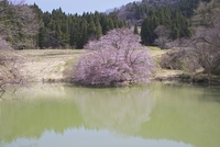 池に写る鏡桜
