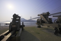長州砲と関門橋の朝
