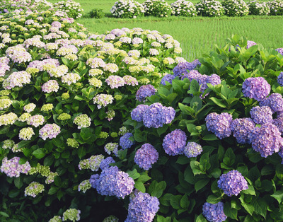 ガクアジサイと田んぼ