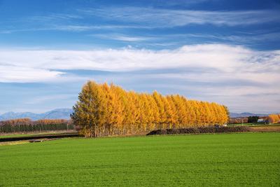 十勝の田園風景とカラマツ林の秋