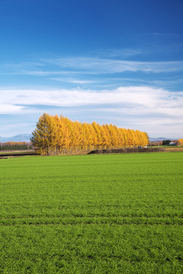 十勝平野の秋とカラマツ林