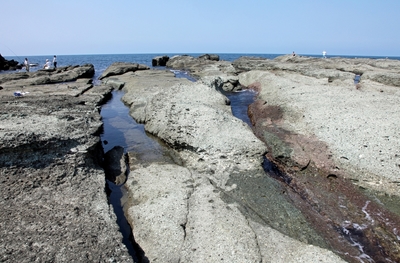 隆起した海食台(関東大震災で隆起)
