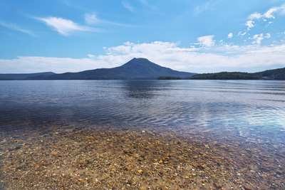 阿寒湖と雄阿寒岳と雲
