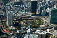 首都高速浜崎橋JCTと旧芝離宮恩賜公園、浜松町駅周辺