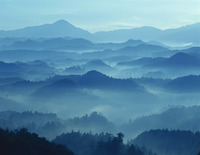 山並みと朝もや