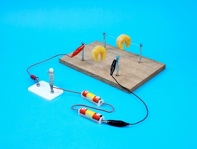 電熱線に電流を流す実験(蜜蝋を乗せる)