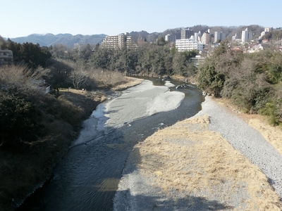 多摩川(青梅の町並みより奥多摩,上流方面)