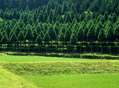 青田と杉木立。仏性寺にて