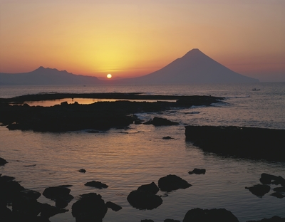 番所鼻自然公園から開門岳(薩摩富士)と朝日