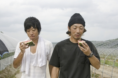 スイカを食べる