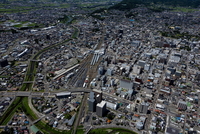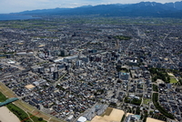 長野駅と周辺の街並みと長野盆地