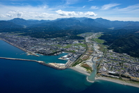 姫川港より糸魚川駅と街並み