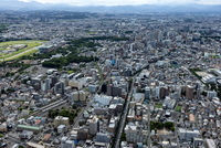 富山城,富山県庁周辺より富山駅方面の街並み