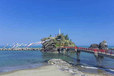 鯉のぼり泳ぐ能生の弁天岩