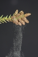 スギ雄花、花粉を出す