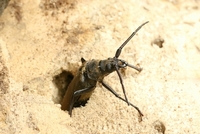 木の穴から出て来たウスバカミキリ
