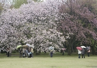雨のなかの花見