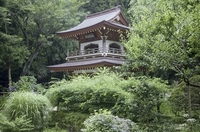 アジサイ咲く唐式鐘楼門