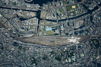 品川駅と泉岳寺,新駅予定地周辺(俯瞰撮影)2,000m