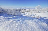 屈斜路湖の樹氷と雄阿寒岳(中央)