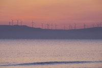 宗谷丘陵の風力発電と宗谷湾の朝