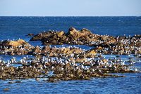岩礁のカモメと太平洋