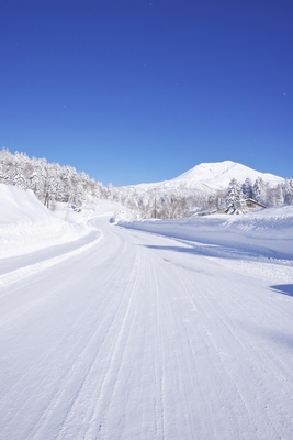 旭岳温泉近くの道と旭岳
