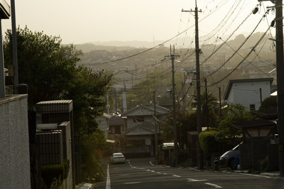黄砂にかすむ奈良市内住宅街