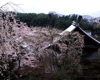 天龍寺の桜と比叡山