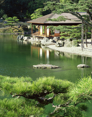 栗林公園 掬月亭 松 茶席 池 数寄屋造り 庭園