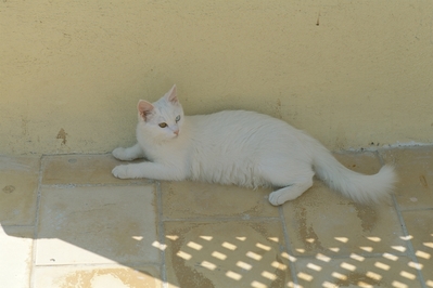 涼む白猫