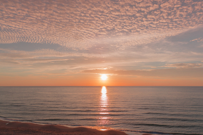 御輿来海岸の干潟と夕日