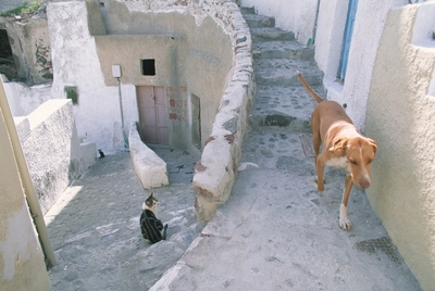 路上の犬と子猫