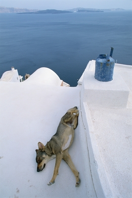 白い屋根で昼寝する犬