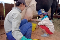 牛の乳絞りをする女の子