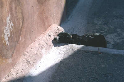 日陰の階段と犬