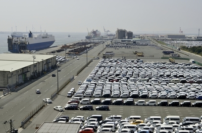 船積みを待つ輸出自動車
